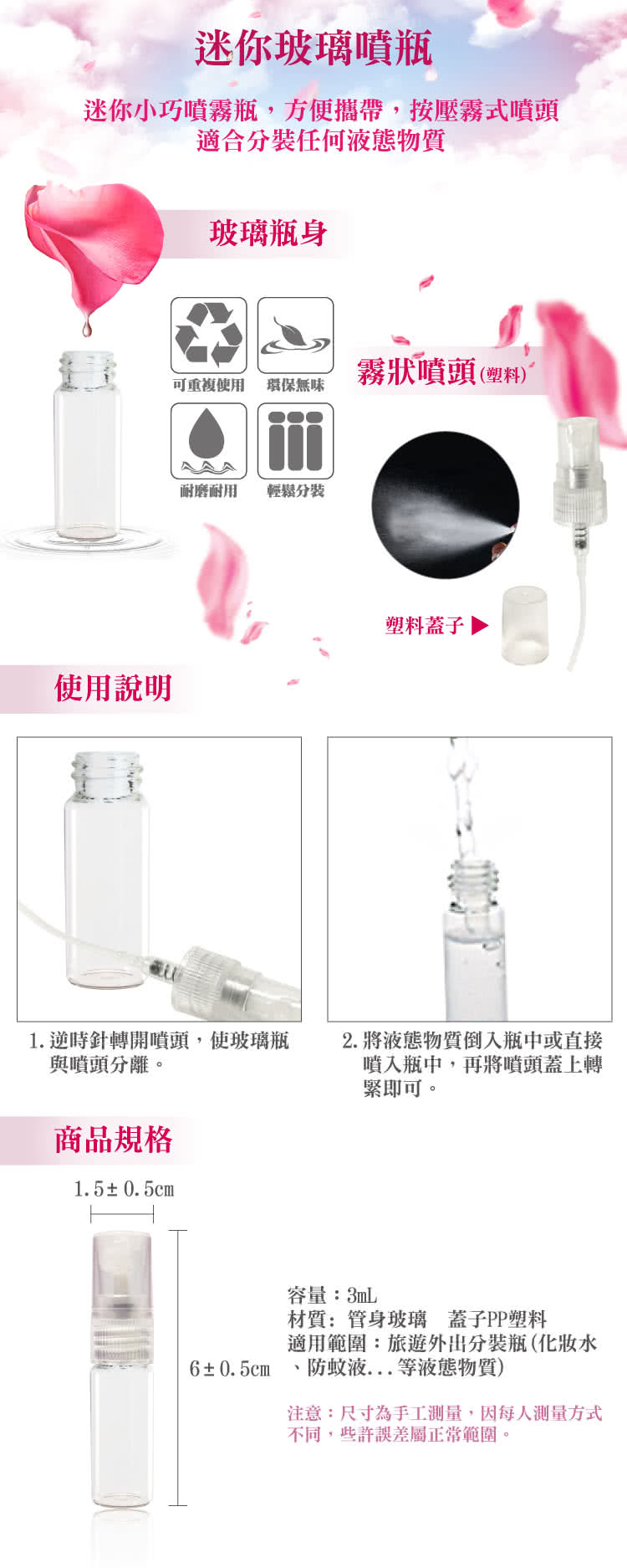 【MYBEAUTY】玻璃隨身噴霧分裝瓶(3mL-5入組 霧狀噴霧瓶 旅行分裝-隨身收納)